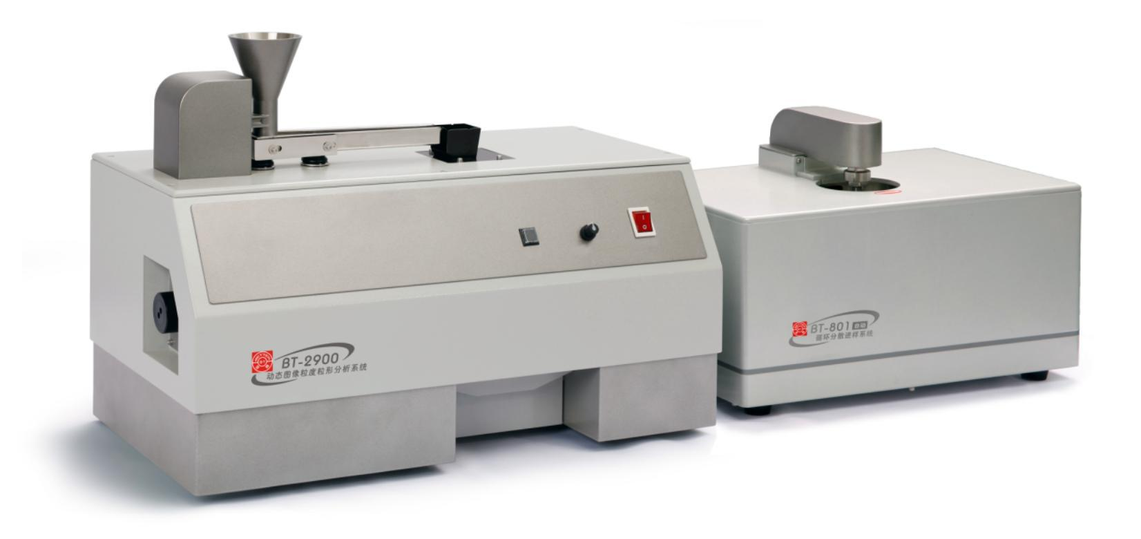 BT-2900動(dòng)態(tài)圖像粒度粒形分析系統(tǒng)主要適用于粗的、粒狀材料的粒度粒形分析領(lǐng)域,如金剛砂、研磨材料、機(jī)制沙、河沙等。它的測(cè)試過(guò)程是將20g左右的樣品放到儲(chǔ)料漏斗里,通過(guò)電磁振動(dòng)加料器和布料槽將顆粒分散開(kāi),并在布料槽的末端自由下落,高速攝像機(jī)在下落過(guò)程中拍攝顆粒圖像,并通過(guò)電腦對(duì)這些圖像進(jìn)行分析,從而得到粒度與粒形數(shù)據(jù)。